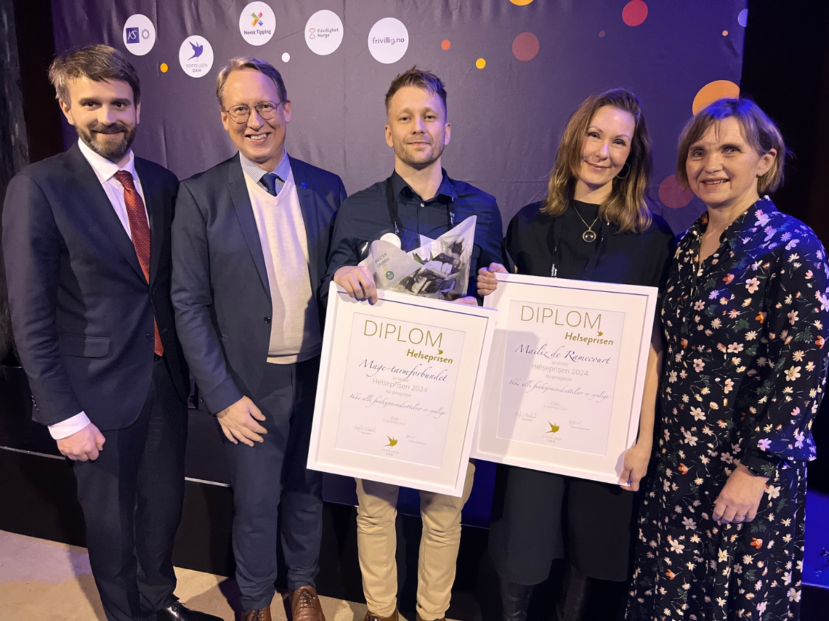 Helseprisen er en prestisjefylt utmerkelse fra Stiftelsen Dam, som årlig deles ut til et verdig helseprosjekt i regi av en frivillig organisasjon. I år var Mage-tarmforbundet én av tre finalister. Også Løvemammaene og Norske Kvinners Sanitetsforening var nominerte for henholdsvis prosjektene «Løvemammaenes hjelpetjeneste» og «Ta din seksualitet tilbake!». Det var til slutt Mage-tarmforbundet som stakk av med seieren etter publikumsavstemming. Rekordmange stemmer hadde blitt avgitt i årets stemmeprosess.