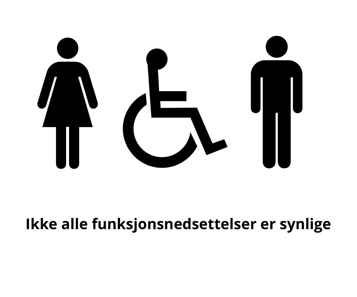 Dagens standardsymbol for alle funksjonsnedsettelser er en person i rullestol. Men når det anslagsvis er hele 70 til 80 prosent av alle funksjonsnedsettelser som er usynlige, hvorfor fortsetter vi å bruke dette skiltet da?